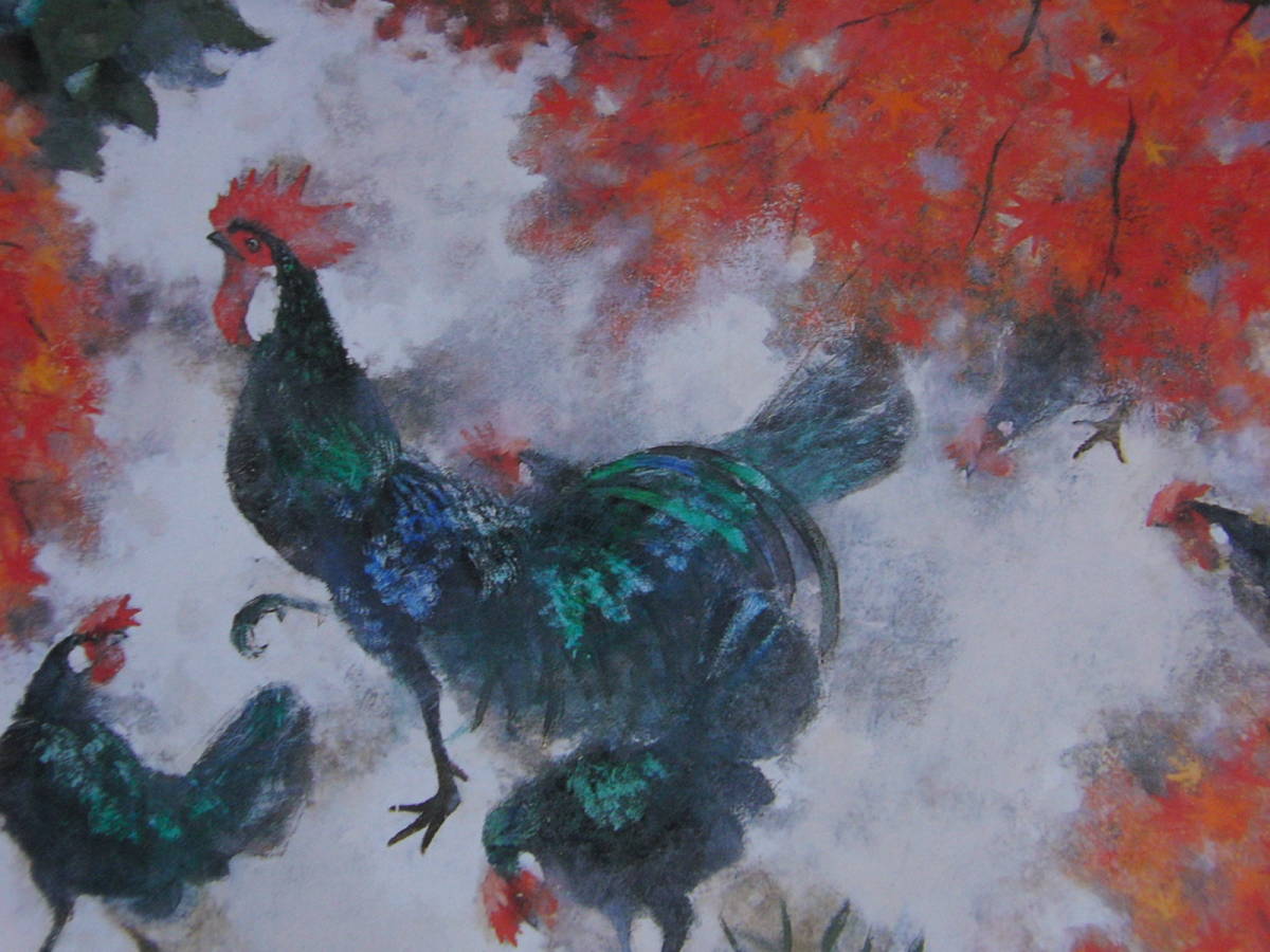 - 清原啓一、〈紅葉の遊鶏〉、希少画集画、高級新品額・額装付、状態良好、送料無料