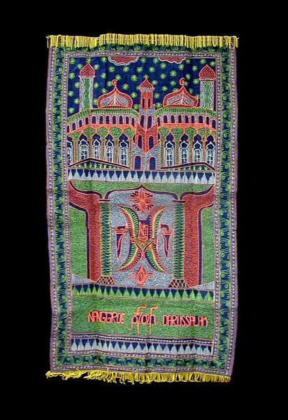 - インドネシア・特売アチェ刺繍のお祈り用バッグ型マット(黄緑&