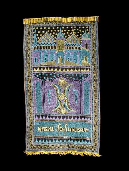 - インドネシア・特売アチェ刺繍のお祈り用バッグ型マット水色紫
