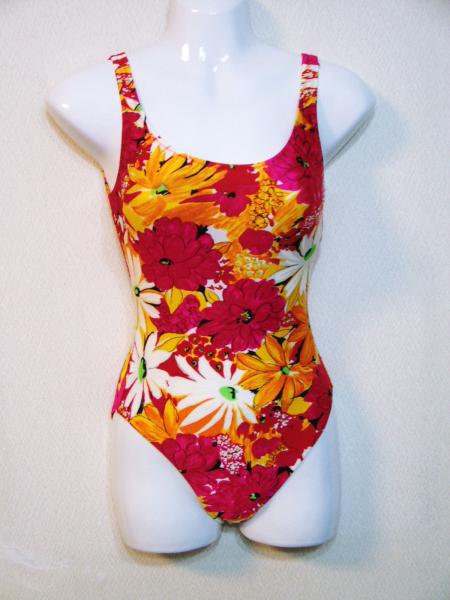 - ☆SW53大胆な花柄♪ワンピ水着(オレンジ系)9M☆