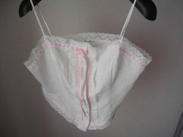 - ★60s イギリス ヴィンテージ レース キャミソール レア ホワイト ピンク リボン