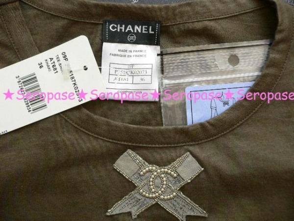 - ★09Pシャネル CHANEL 可愛い胸リボンのTーシャツ36