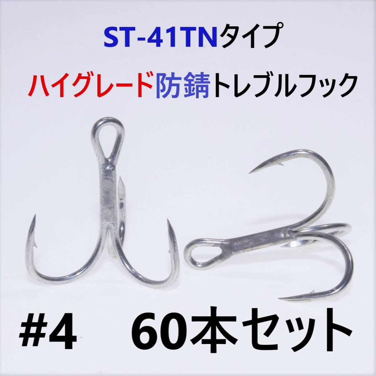 - 【送料180円】ST-41TNタイプ#4 60本セット 高品質ハイグレードトレブルフック トリプルフック ST-46好きに