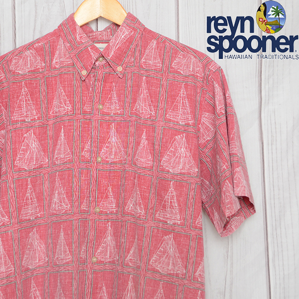> RS3542 レインスプーナー アロハ 半袖シャツ L 肩幅48 ディードリッヒヴァレッズ 総柄 ヨット メール便 xq