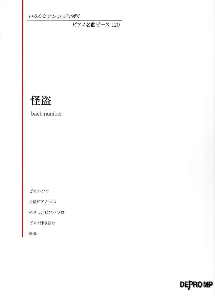 - いろんなアレンジで弾く ピアノ名曲ピース(120)怪盗/back number 楽譜