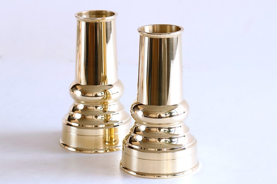 - 榊立 榊立て 豪華 2本組 一対 ■ 華美 真鍮製 磨き ■ 金色 黄金 神棚に