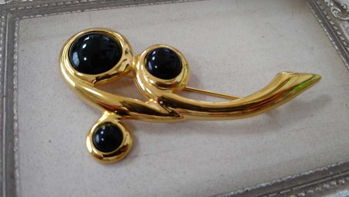 - □Napir 刻印□ゴールドカラー×黒・ブローチ□抽象的モチーフ□