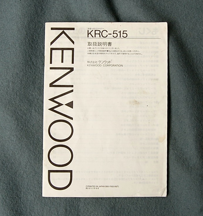 - 取扱説明書 カセットレシーバー KENWOOD KRC-515 ケンウッド