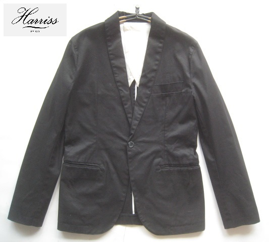 > 美品!!ハリス パリス Harriss PARIS*ストレッチコットンブラック1つボタンジャケット 38 実寸M 黒 日本製