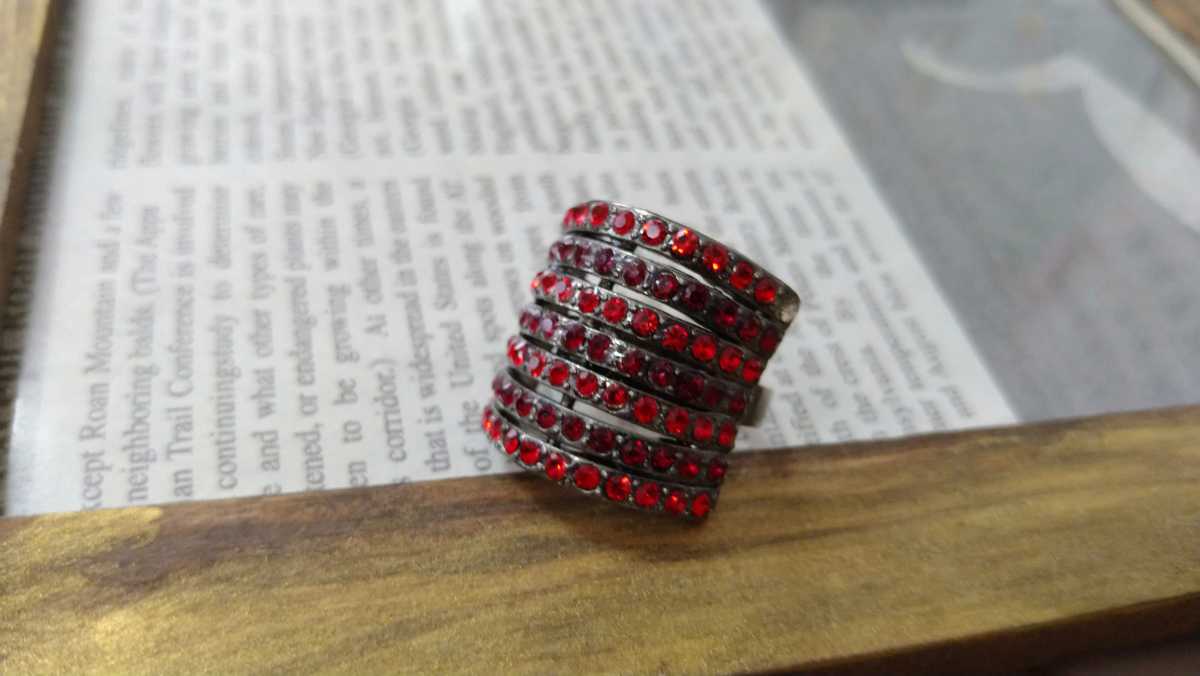 - □クリアレッドビジューのハーフ7連リング□フリーサイズ□