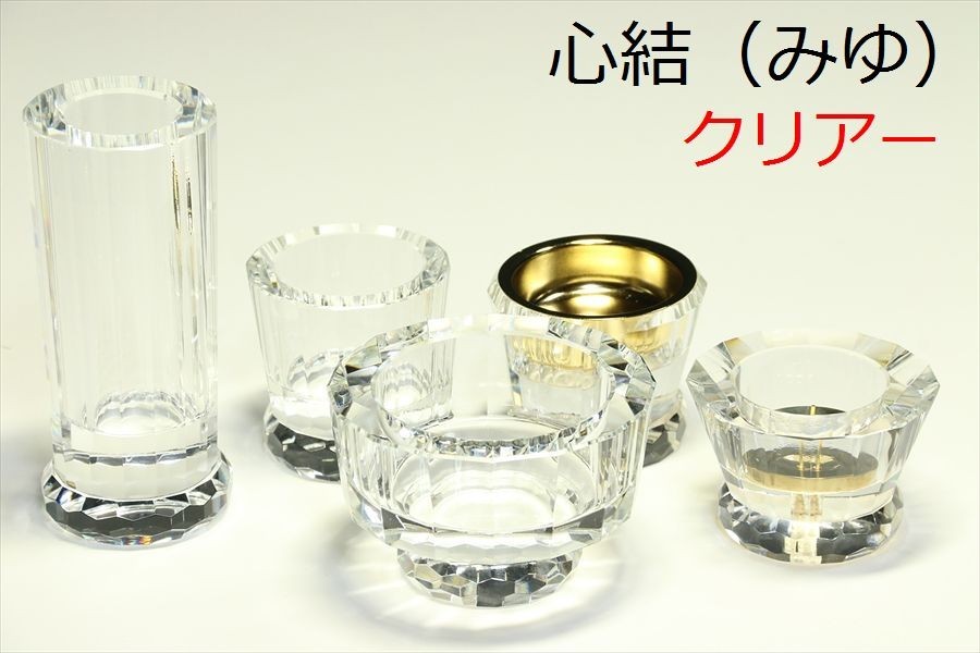 - 仏具■5点セット■モダン 家具調 仏壇 お供え■クリスタル クリアー 5具足■送料無料