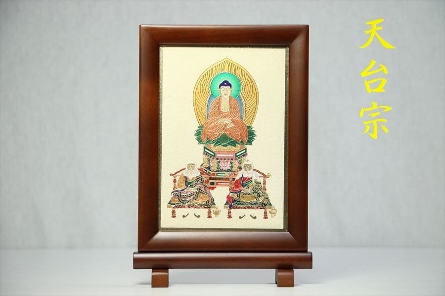> 仏具 掛け軸 置き軸■天台宗 阿弥陀如来坐像 智者大師 伝教大師 レーザー彫金加工■額付(高さ20cm×幅13.5cm×奥行き1.7cm)仏壇