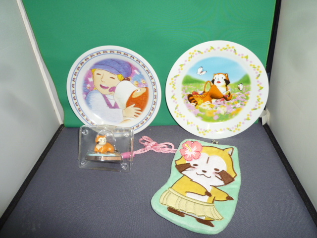 - b非売品★未使用★あらいぐまラスカル ハワイアンポーズがまぐちとお皿2種とフイギュアの4点