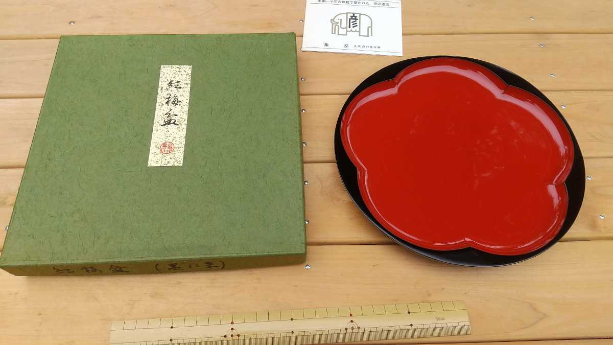 - 平安象彦 紅梅盆 紙箱 【直径24㌢高さ2㌢重さ270㌘】