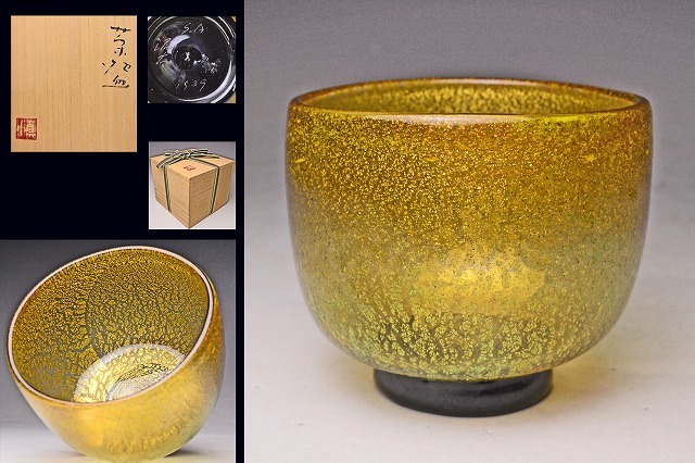 - 浅井慎平 ★ 金彩 吹きガラス 茶碗 ★ 共箱 ★ カメラマン ★検 浅井純介★