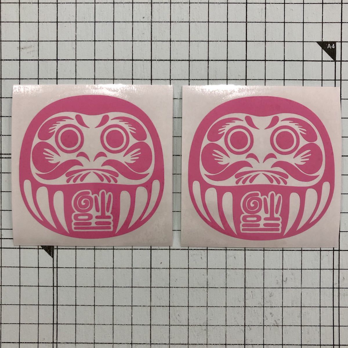 - 送料無料 2枚セット だるま 倒福 逆さ福 カッティングステッカー ピンク色 達磨