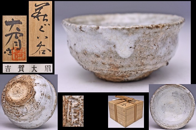 > 吉賀大眉 ★ 萩 白釉 ぐい呑 ★ 共箱 栞 ★ 師: 沼田一雅 / 北村西望 ★ 酒器 ★ 泉流山 ★ 検 吉賀将夫 吉賀大雅 ★