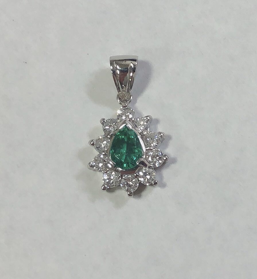 - 【質屋 尾張屋商店 東京】 ☆仕上済☆ Pt900 プラチナ エメラルドダイヤペンダントトップ レディース