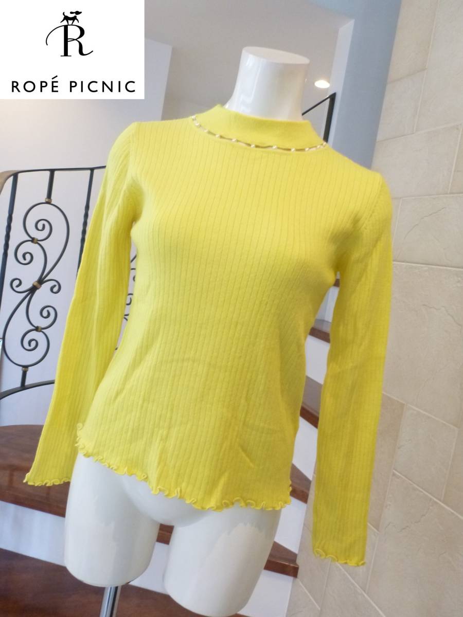 - 美品 ROPE' PICNIC ロペピクニック ★黄色イエロー パール 長袖 セーター 38 M相当
