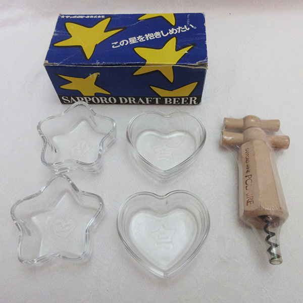- 未使用セット!■ SAPPORO サッポロ ワイン POLAIRE オープナー 木製 サッポロビール 器 お皿 トレイ 星 ハート