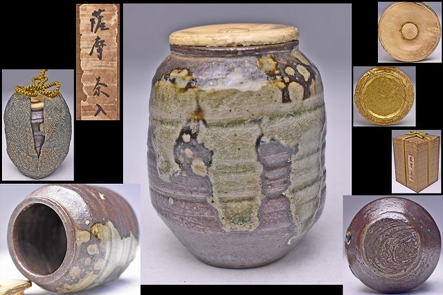- 時代 ★ 薩摩 茶入 ★ 古箱 仕覆 ★ 土味良く釉景の美しい逸品 ★ 茶道具 ★ 黒薩摩 か ★