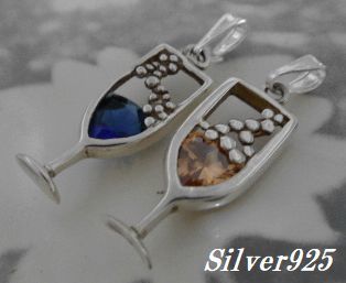- シルバー925銀のワイングラス[ブルージルコニア&オレンジジルコニア付]ペア ペンダント2個set