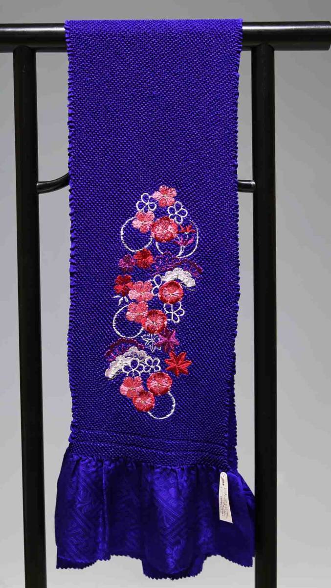 - 振袖用正絹総絞り帯揚げ 四つ巻き エバース染 刺繍 1507 クリックポスト発送 送料無料