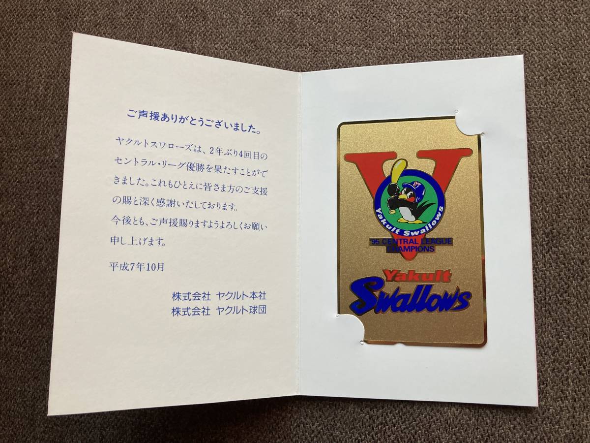 > ★未使用 ヤクルト スワローズ Yakult Swallows セリーグ 優勝 1995年 テレホンカード テレカ 50度数 金 ゴールド 台紙付き
