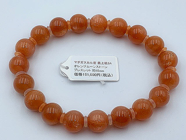 > キラキラシーラ『黄金オレンジムーンストーン』10㎜ブレスレット 女性ホルモン活性、恋愛運、 綺麗になる石 ダイエットのサポート