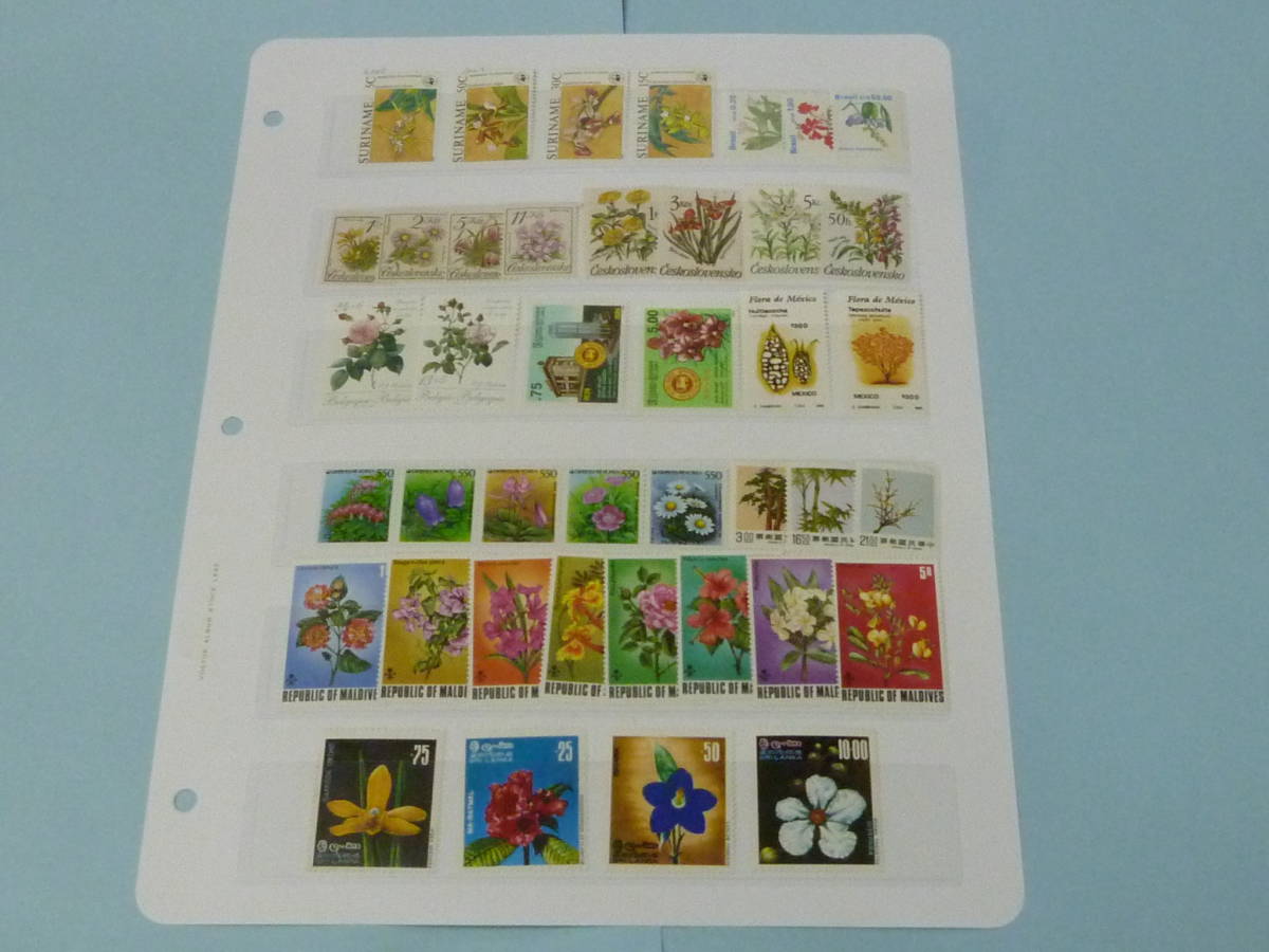 - 22 S 植物切手№24 世界各国 スリナム・韓国・モルジブ・他 大部分各完揃 計37種 1リーフ 未使用NH VF