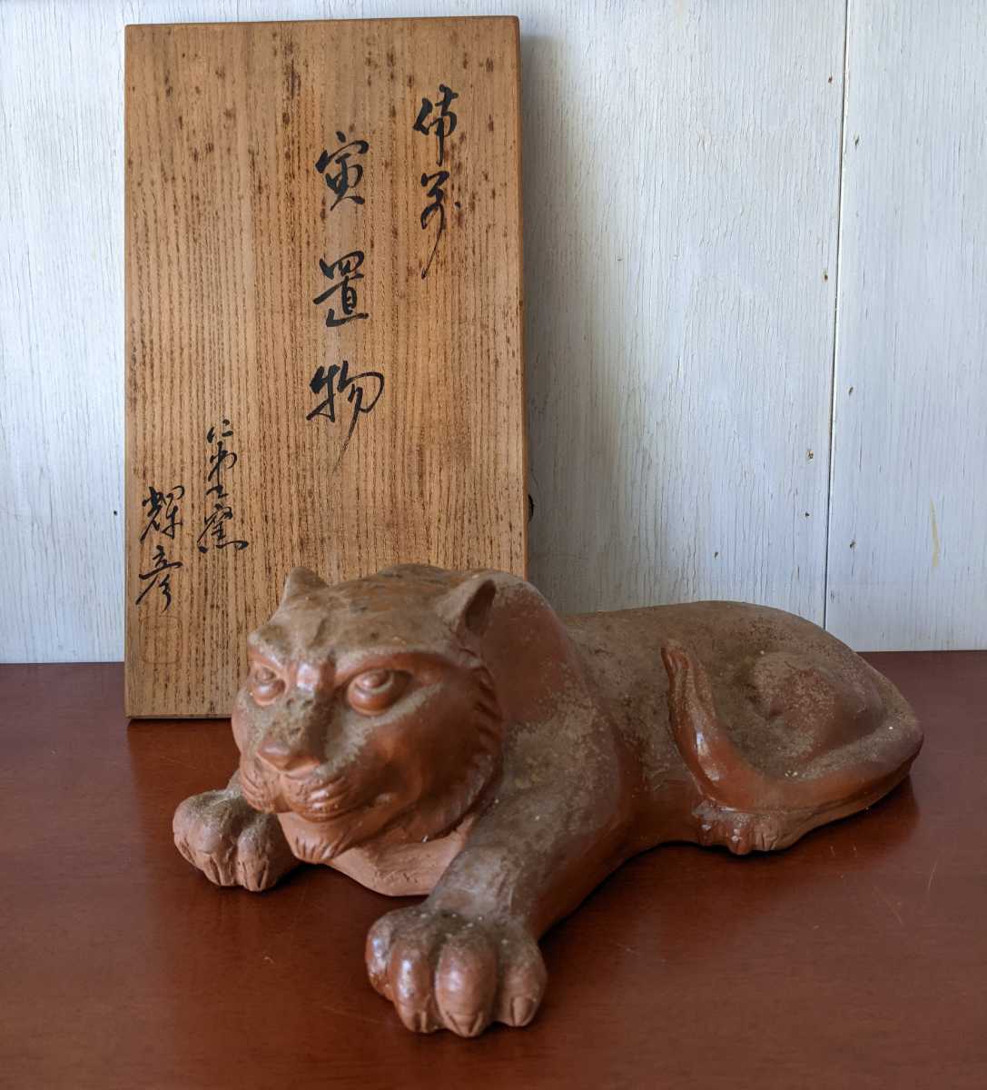 - 備前焼 大森輝彦 寅 置物 共箱 トラ