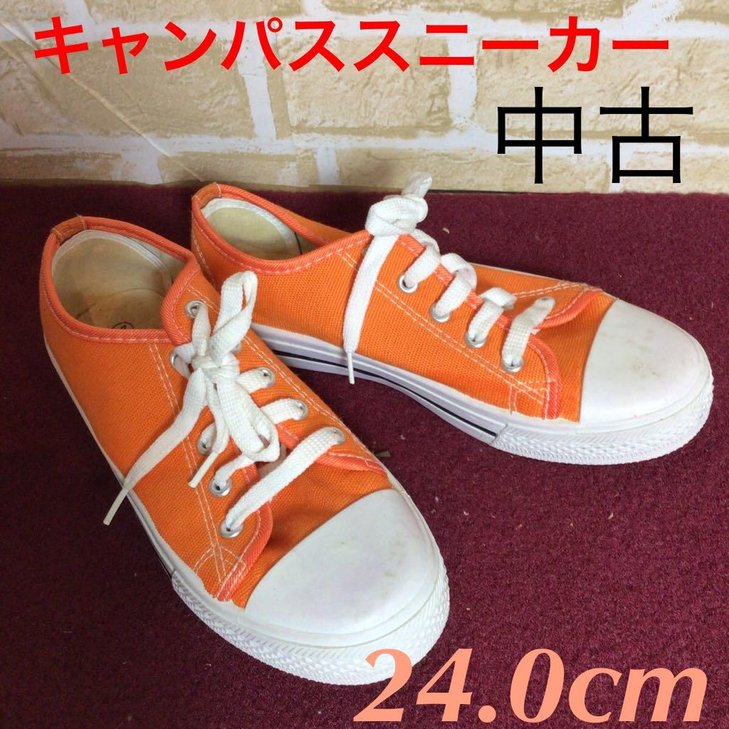 > 【売り切り!送料無料!】A-157 キャンパススニーカー!オレンジ!24.0cm!鮮やか!派手かわ!学生!通学!中古!