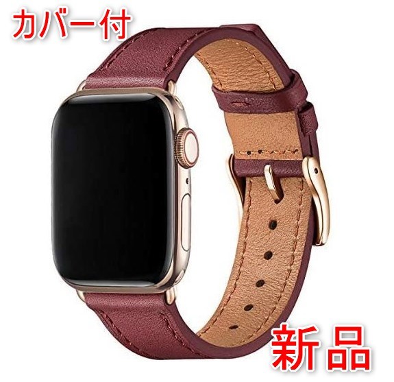 > [新品][送料込] カバー付 apple watch アップルウォッチ バンド ワインレッド/金 . 38mm 40mm 41mm 本革