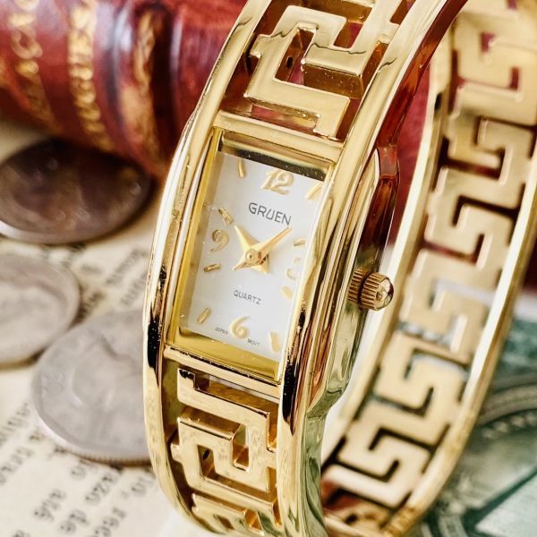 - 【高級時計グリュエン】Gruen クォーツ 腕時計 レディース ビンテージ ブレスレット カクテル ウォッチ クリスタル