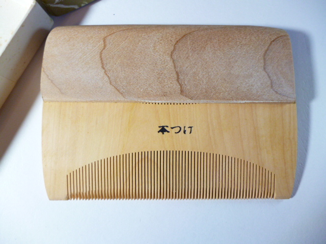 - ф 本つげ細工 両歯 櫛 鞘付き ф つげ 黄楊 本つげ