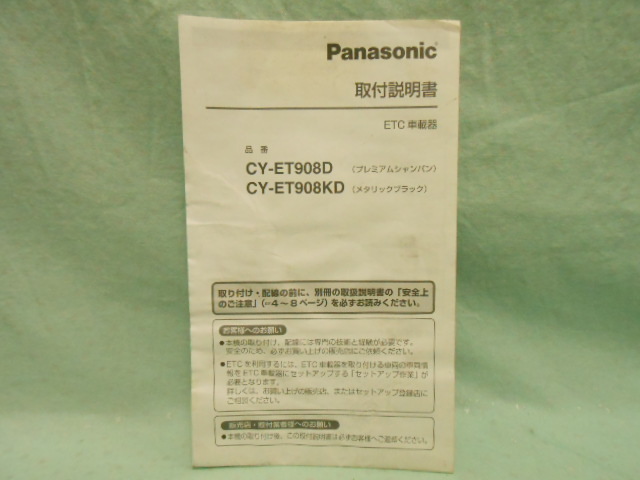 > L-496 ☆ パナソニック CY-ET908D・CY-ET908KD ☆ 取付説明書 中古【送料¥210~】