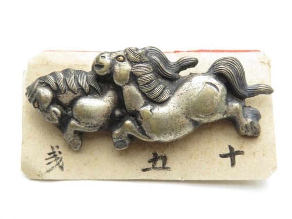 - 【2543】刀装具 江戸~ オリジナル 銀地 二匹に馬 金具 (初品・買取品)