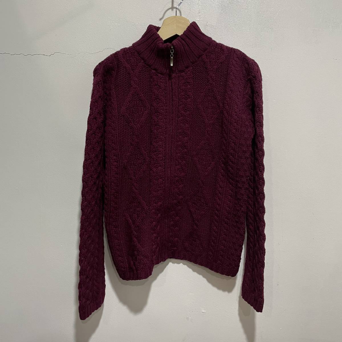 > ☆送料無料☆INIS CRAFTS☆イニスクラフト☆アランニットジップアップセーター☆レディースS☆アイルランド製☆ビンテージ☆90s☆a22