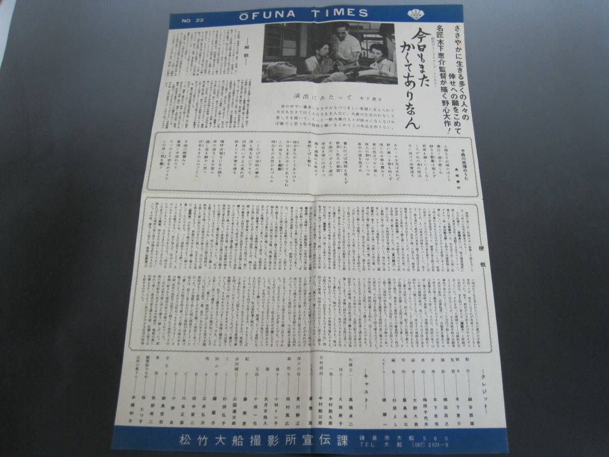 - 映画 「今日もまた かくてありなん」OFUNA TIMES 松竹スタジオだより 当時物 二つ折り大型チラシ 出演:高橋貞二ほか 送