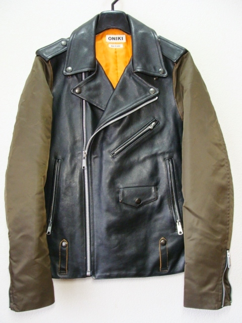 > ONIKI オニキ ◇ 牛 皮 革 カーフ レザー ナイロン 切替 再構築 ダブル ライダース ジャケット ブルゾン