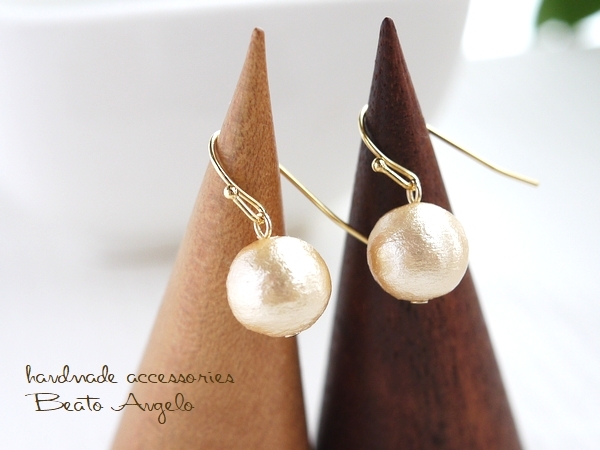 - ◆+angelo+コットンパールのシンプルピアス(p-193)シャンパン G 一粒 10mm デザインフック