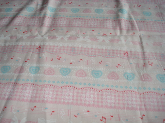 - 「レース・ボーダー」(ピンク)約50×50㎝/リボン・音符・ハート