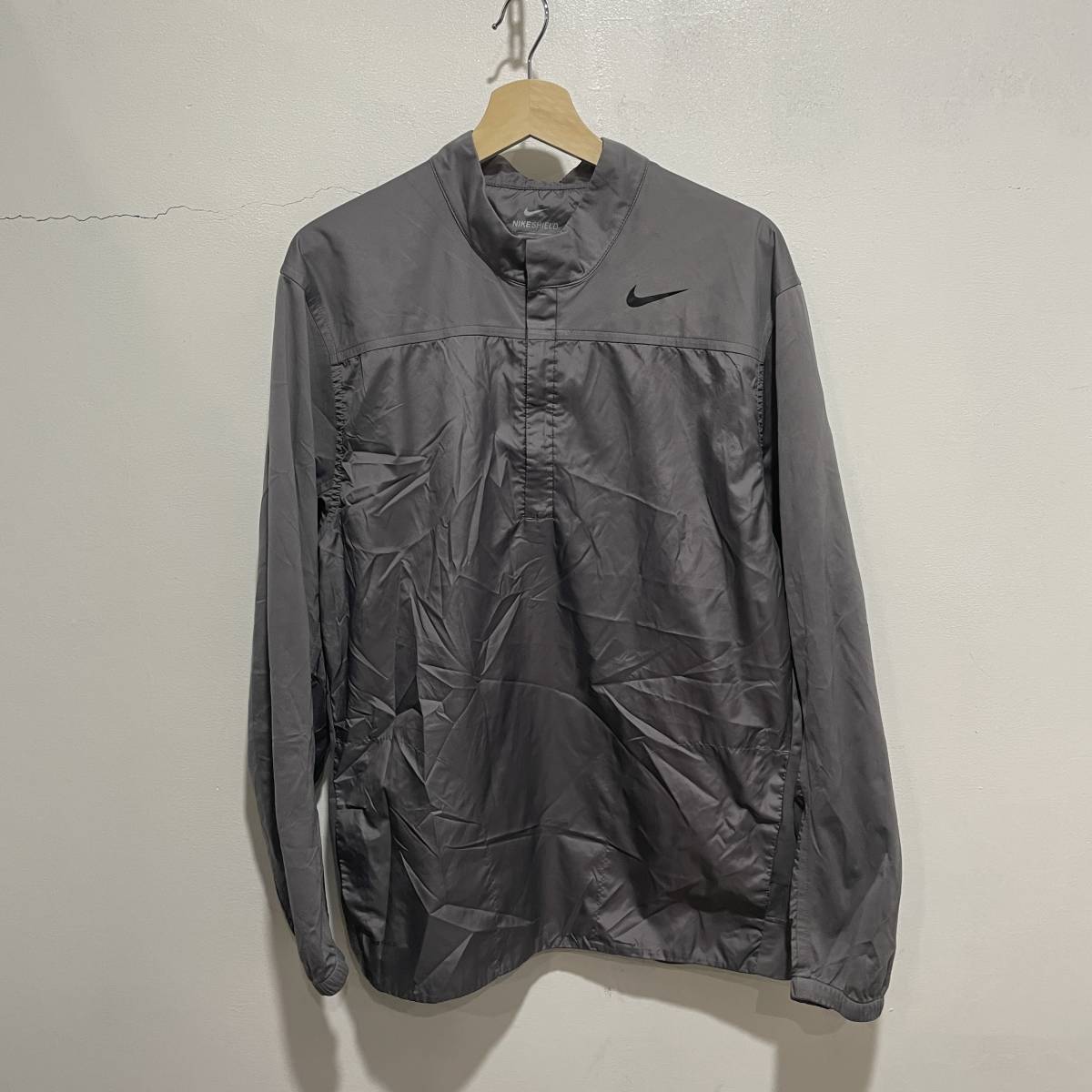 - ☆送料無料☆NIKE☆ナイキ☆切替えハーフジップナイロンジャケット☆メンズL☆ゴルフ☆グレー☆D21c