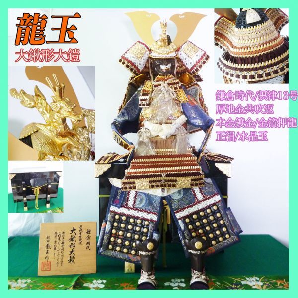 > 新品 龍玉 大鍬形大鎧 摂津13号 戦国武将鎧兜 鎌倉時代名将 正絹縅 水晶玉 本金鍍金 金箔押龍 豪華絢爛 国宝重文参考に製作 五月人形_48