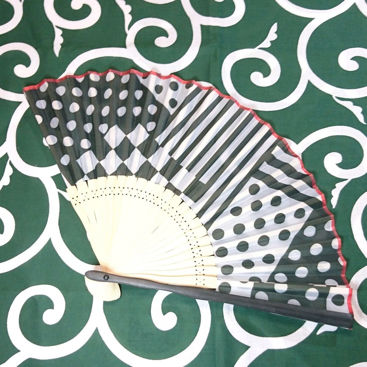 - 送料無料)竹製 生地扇子 モダン柄 縦幅21cm 古扇子 A06623