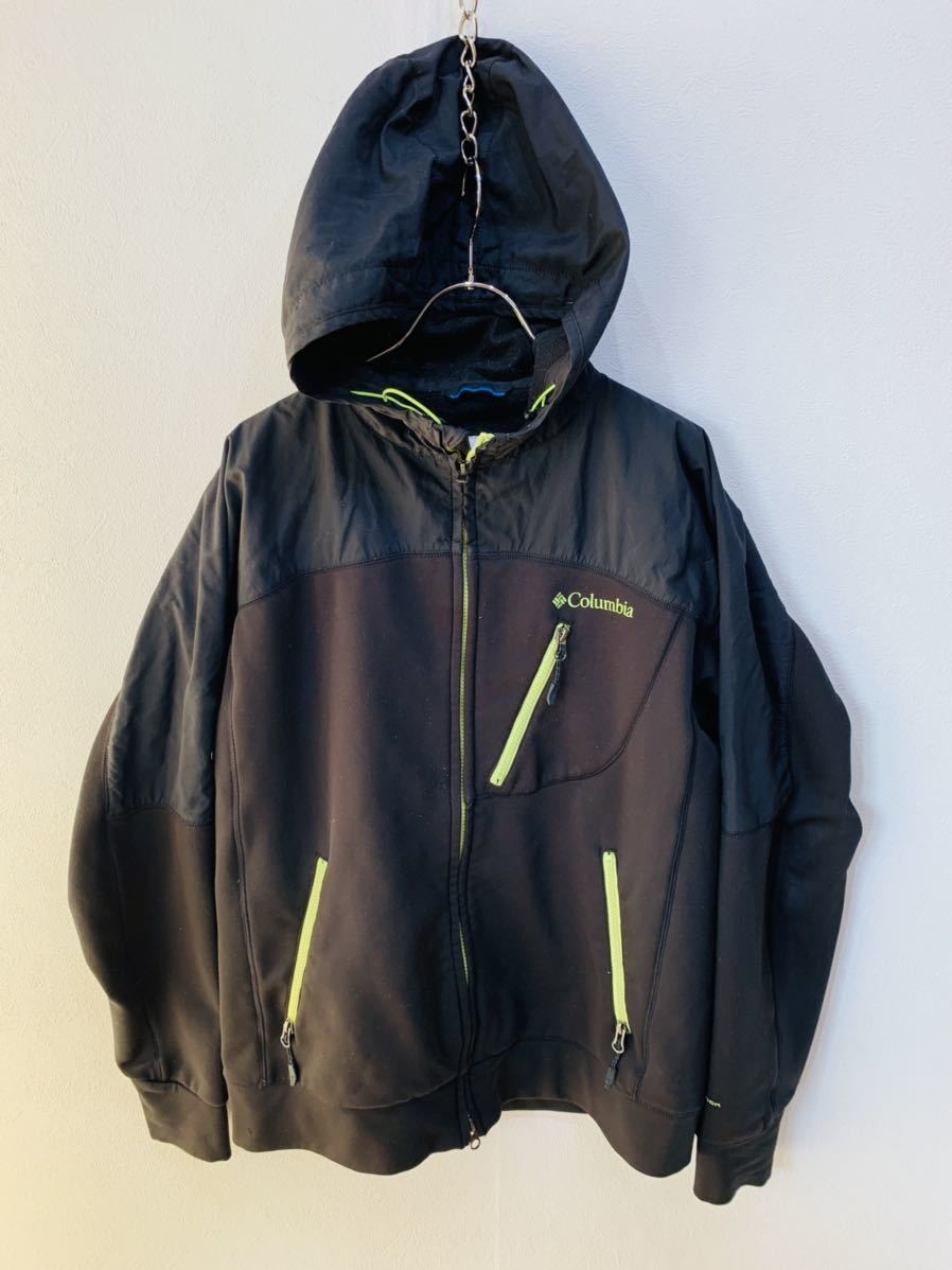 - 【人気】Columbia/コロンビア ジップアップパーカー 黒/ブラック メンズL サイズ 大きいサイズ アウトドア 指ぬき袖 K1654