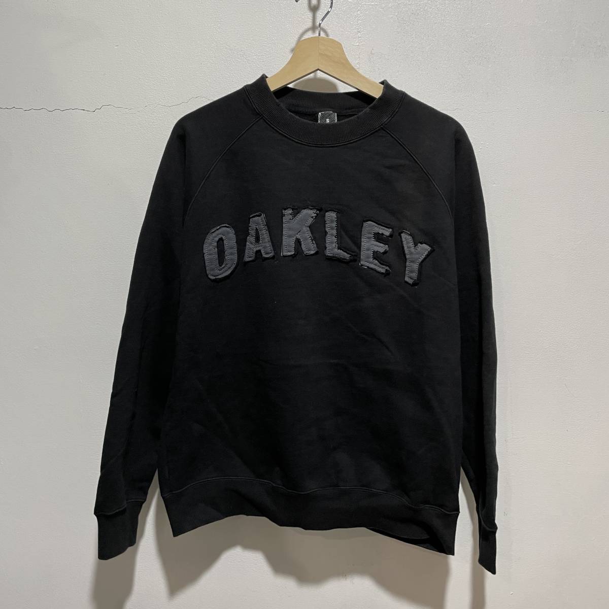 - ☆送料無料☆OAKLEY☆オークリー☆ワッペンログスウェット☆ダメージ加工☆肉厚☆黒☆メンズS☆a21c