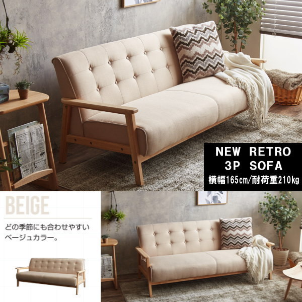 > 送料無料 懐かしい昭和の雰囲気 肌さわり抜群ファブリック 3人掛ソファ 横幅165cm RET-GYグレー