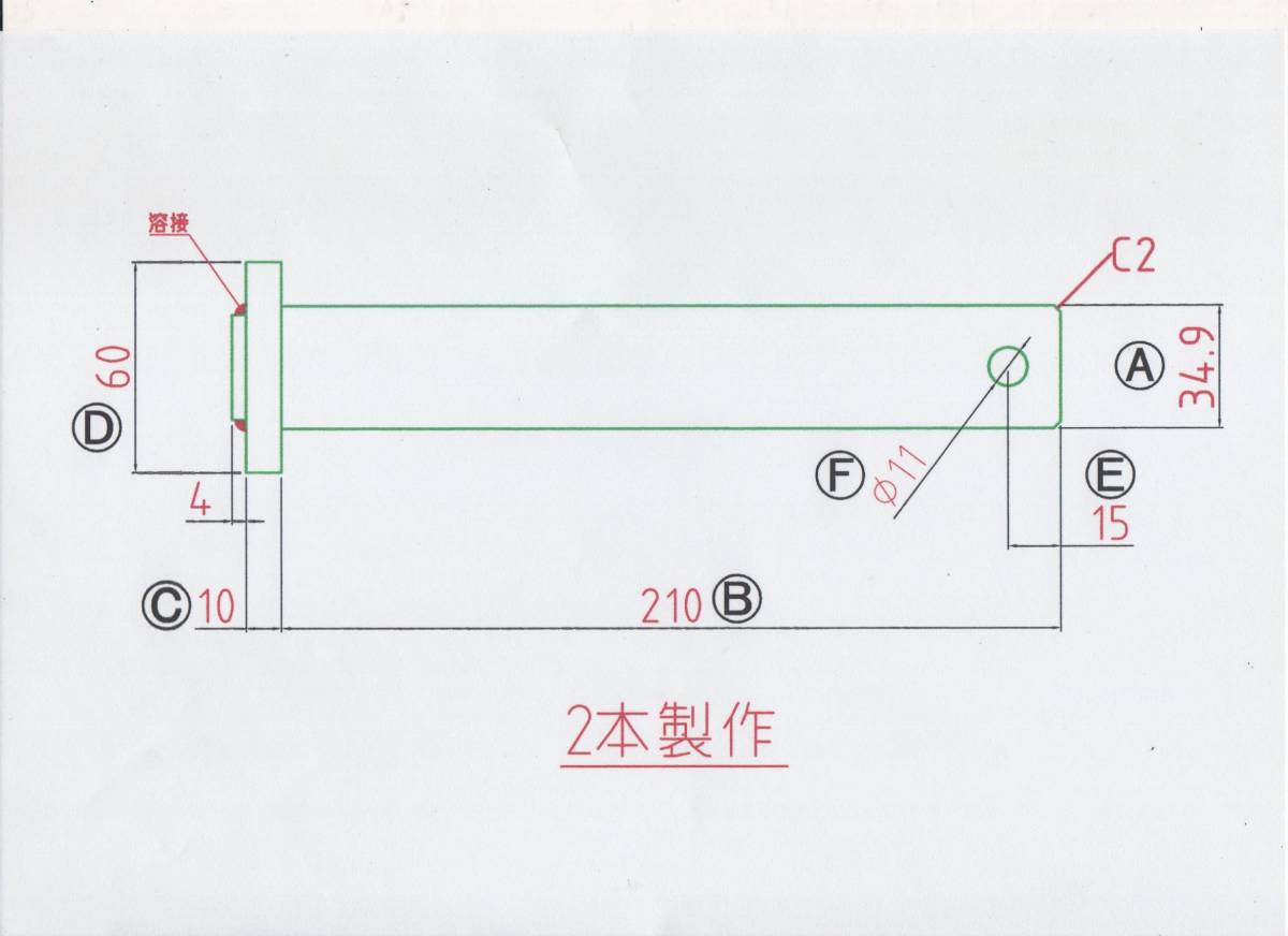 - NO1121 Φ35用 溶接ツバ下210mm バケットピン 2本1セット