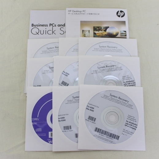 - 中古品 HP 8300 Elite 6300 Pro用◆リカバリディスク Windows7 32bit・64bit 9枚セット [取扱説明書付] 「HP 03 ⑱」